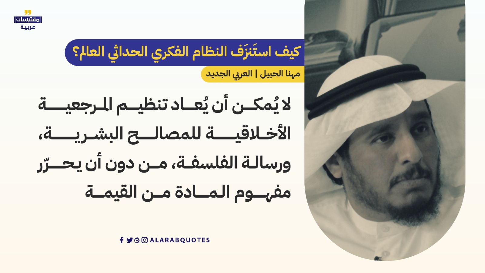 في حين وخلافاً، لما يظنه أنصار الحضارة الغربية المطلقون، فإن إعادة تأسيس هذه المصطلحات معرفياً، لن يذهب بالخيرية التي جاءت بها بعض الأسس لنفع البشرية، وإنما ستَمنَع الثورة المعرفية الجديدة، قواعد التطرف التي أهلكت وآذت الطبيعة والإنسانية الاجتماعية، من الاستمرار في التدمير الكوني للعالم.