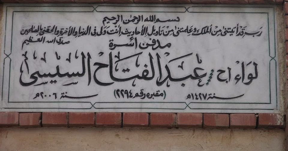 وتأتي المقبرة المشيدة منذ ثماني سنوات والآية المحرفة فوقها، لتكشف وتؤكد أن ثمة عداء رهيب يجمع بين السيسي و دين الإسلام ،دفعه لإختيار تلك الآية تحديدا على لسان سيدنا يوسف أحد أنبياء بني إسرائيل ثم يحذف منها دعائه (سواء بقصد أو بغير قصد) بأن يتوفاه الله مسلما.