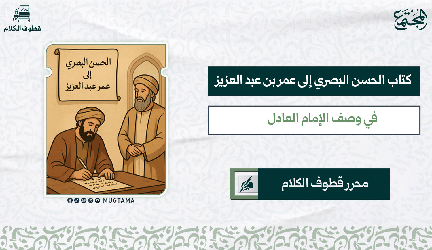 كتب عمر بن عبد العزيز رضي الله عنه، لما وُلِّي الخلافة، إلى الحسن بن أبي الحسن البصري أن يكتب إليه بصفة الإمام العادل، فكتب إليه الحسن رحمه الله: